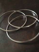 無駄をそぎ落としたシンプルなデザインで、単体でも重ね付けでもバランスよく馴染む仕上がり。滑らかなラインが肌に沿い、さりげなく光を反射します。