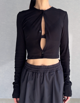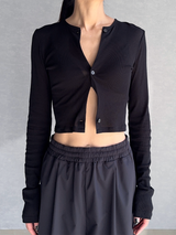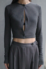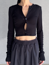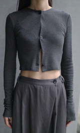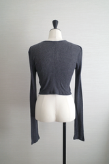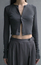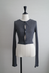 前後どちらでも着用できる2WAY仕様のカーディガン。