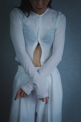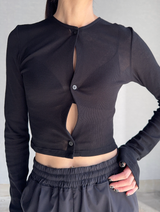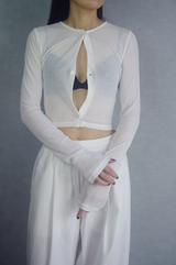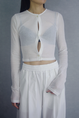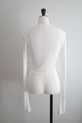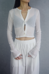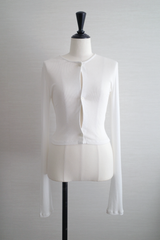 程よい透け感があり、ボタンの隙間から素肌やインナーが覗くデザインなのでレイヤードスタイルにもピッタリの一着です。