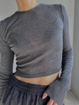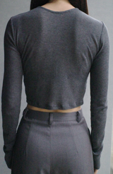 グレー:美しい光沢感と優しい風合いを併せ持つビスコース×コットン素材。なめらかでふわっとしたパウダリーなタッチが、肌に心地よく寄り添います。
