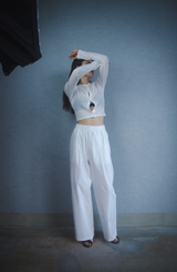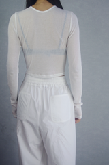 ホワイト・ブラック:希少な高級超⻑綿「スーピマコットン」の強撚糸を使用。繊細なテレコ編みで仕立てた素材は、ふんわりと柔らかく、さらりとした快適な着心地が魅力です。