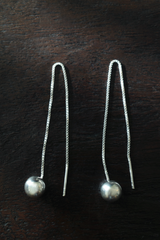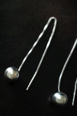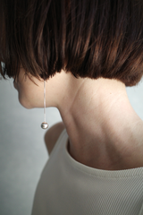 ミニマルなシルエットに、立体的な球体モチーフをあしらったピアス。繊細なチェーンの動きと、メタルの丸みが生み出すコントラストが印象的です。装いに合わせて長さのバランスを調整できるスルーピアス仕様。シンプルながらも存在感があり、耳元に軽やかなニュアンスを添えます。