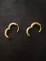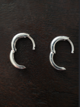 やや厚みをもたせたフォルムが印象的なフープピアス。シンプルながらも存在感があり、耳元に自然な立体感を添えます。日常に溶け込みながら、さりげなく品のある印象に。